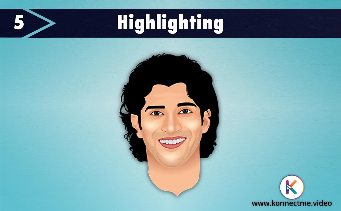 Highlighting involves liquifying major facial features, with highlighting you can give a person a new look by changing eyes, mouth, and other facial features. This step can enhance your portrait. In a straight looking portrait you can highlight cheeks, the tip of the nose and the lower jaw. Because when the light comes straight these parts of the face kind of shine in the light, you can highlight them in white, golden or with the lighter shade of the skin tone
