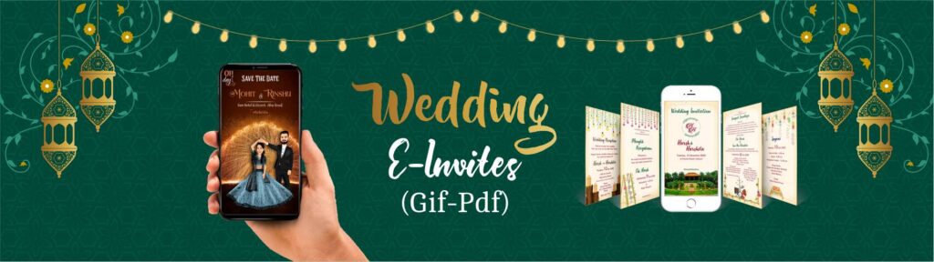 e) In wedding invitation pdf you can choose any theme and colour you like as a wedding invitation will be made the custom and according to your choice and taste.